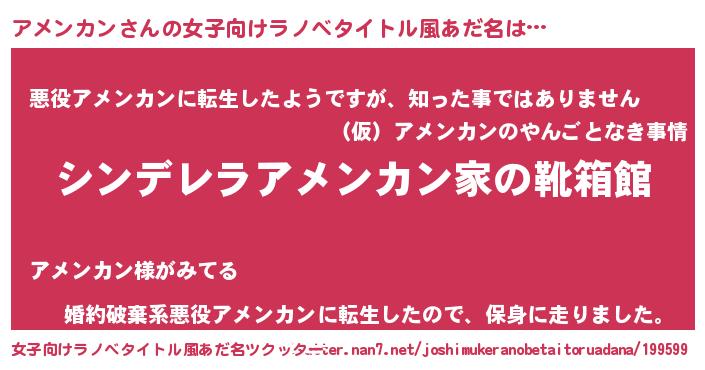 | 男性向けラノベタイトル風あだ名 | 『緋弾のアメンカン』『アメンカンの憂鬱』 |