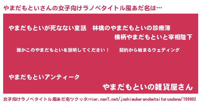 | 胡散臭い通販商品みたいなあだ名 | 『億万長者になれるブレスレット…その名も「やまだもとい」』 |