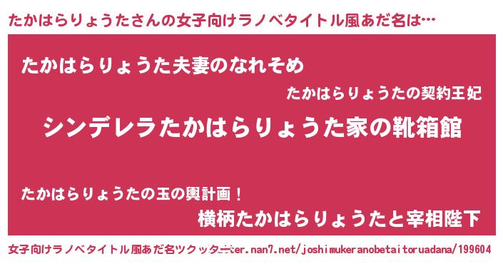 | 胡散臭い通販商品みたいなあだ名 | 『100人中100人が認めたマグネット磁石…その名も「たかはらりょうた」』 |
