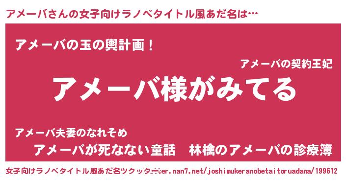 | 男性向けラノベタイトル風あだ名 | 『アメーバの嫁は女の子じゃないと思った?』 |