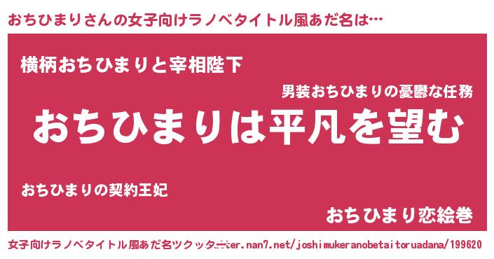 | 男性向けラノベタイトル風あだ名 | 『ダンジョンにおちひまりを求めるのは間違っているだろうか』 |