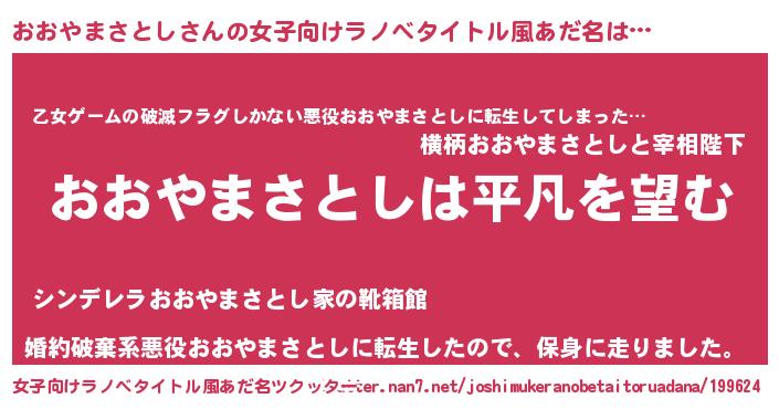 | 男性向けラノベタイトル風あだ名 | 『ダンジョンにおおやまさとしを求めるのは間違っているだろうか』 |