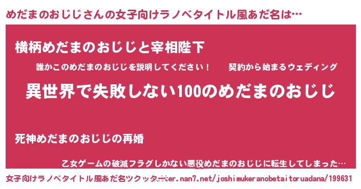 | 男性向けラノベタイトル風あだ名 | 『めだまのおじじという概念が存在しない退屈な世界 』 |