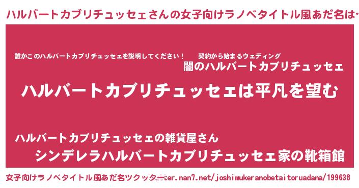 | 男性向けラノベタイトル風あだ名 | 『ダンジョンにハルバートカブリチュッセェを求めるのは間違っているだろうか』 |