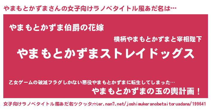 | 男性向けラノベタイトル風あだ名 | 『Re:やまもとかずまから始める異世界生活』 |