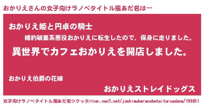 | 胡散臭い通販商品みたいなあだ名 | 『前代未聞の健康食品…その名も「おかりえ」』 |