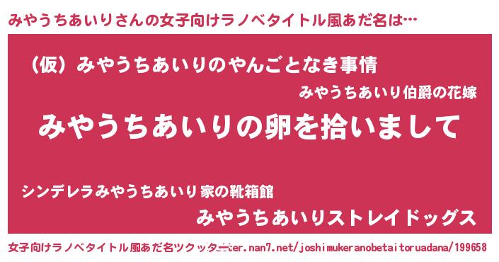 | ポケモン風あだ名 | 『ヒミヤウチアイリ』『ミヤチュウ』 |