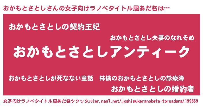 | 意味不明あだ名 | 『自称おかもとさとし』 |