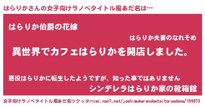 | 意味不明あだ名 | 『永久保存はらりか』 |
