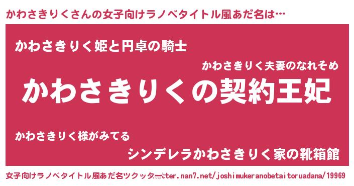 | 男性向けラノベタイトル風あだ名 | 『かわさきりくという概念が存在しない退屈な世界 』 |