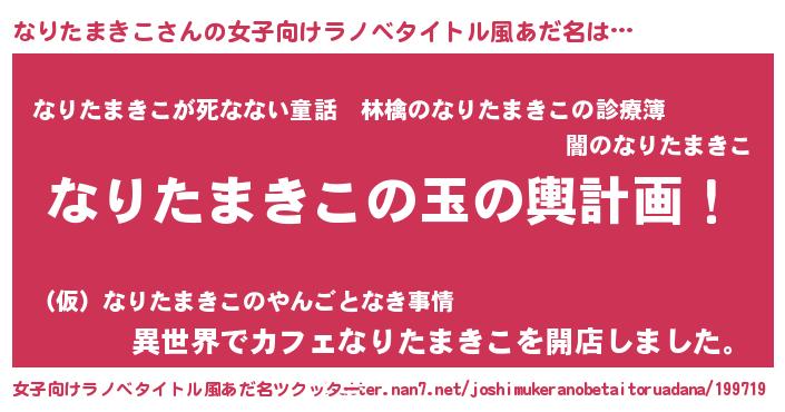 | ヘコむあだ名 | 『なりたまきこ(小並感)』『なりふぇ~』 |