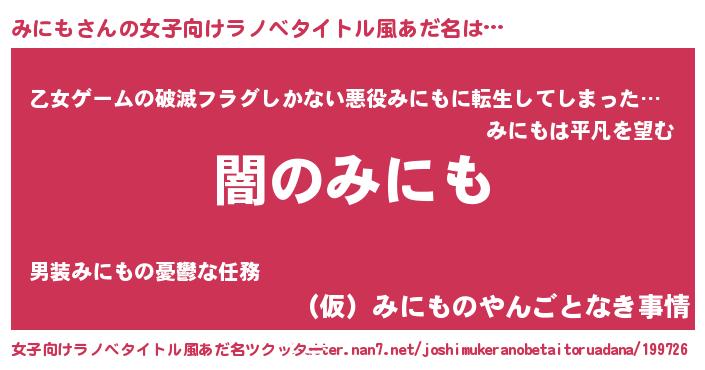 | 欧米人風あだ名 | 『ケンブリッジみにも』『マイケルみにも』 |