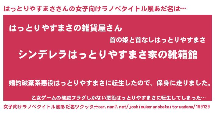 | 意味不明あだ名 | 『はっとりやすまさフォーエバー』 |
