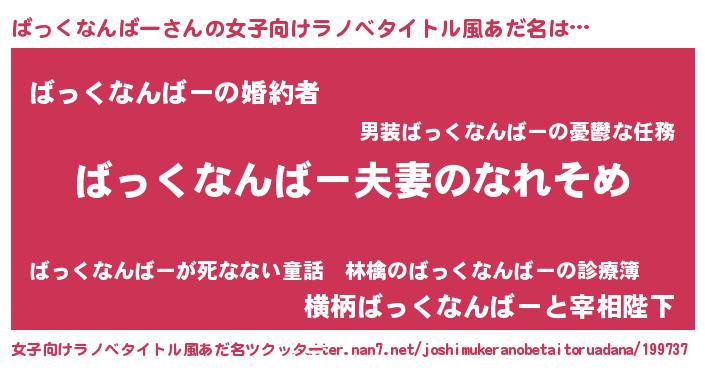 | 欧米人風あだ名 | 『ダニエルばっくなんばー』 |