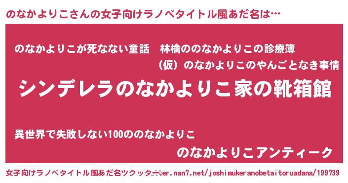 | ヒーロー風カッコイイあだ名 | 『仮面ノナダー』『スーパーノナカヨリコ』 |