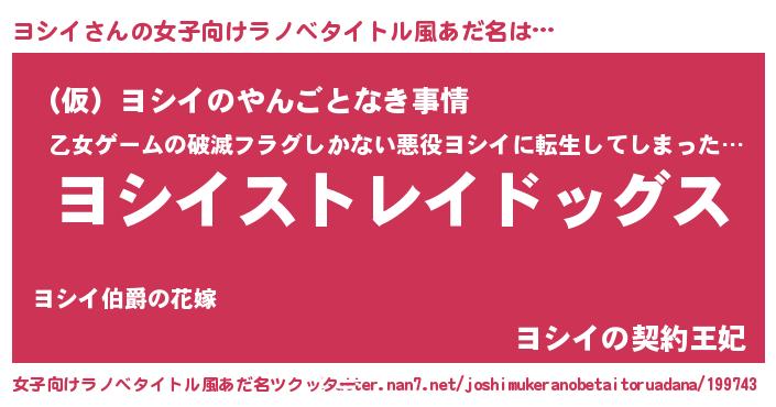 | 男性向けラノベタイトル風あだ名 | 『Re:ヨシイから始める異世界生活』 |
