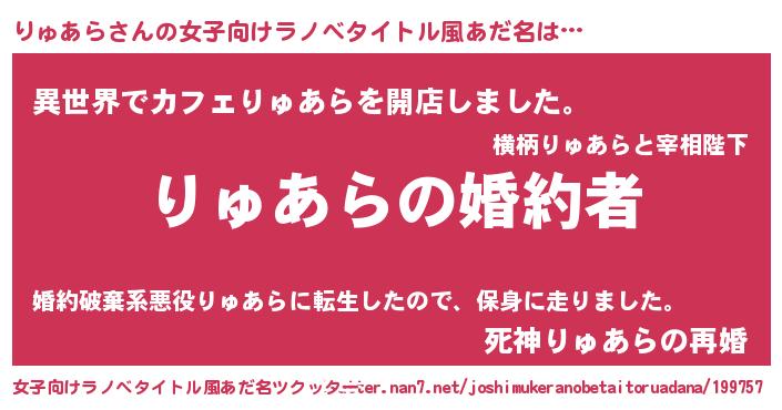 意味不明あだ名 | 『りゅあらフォーエバー』『自称りゅあら』 |