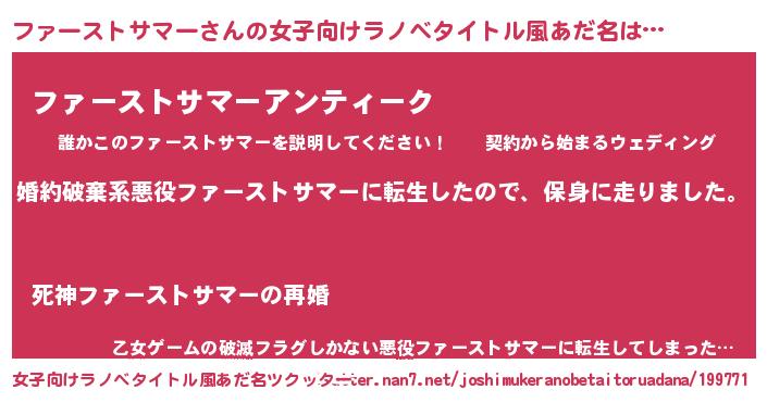 | 男性向けラノベタイトル風あだ名 | 『転生したらファーストサマーだった件』 |