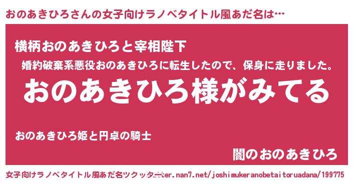| 男性向けラノベタイトル風あだ名 | 『おのあきひろの嫁は女の子じゃないと思った?』 |