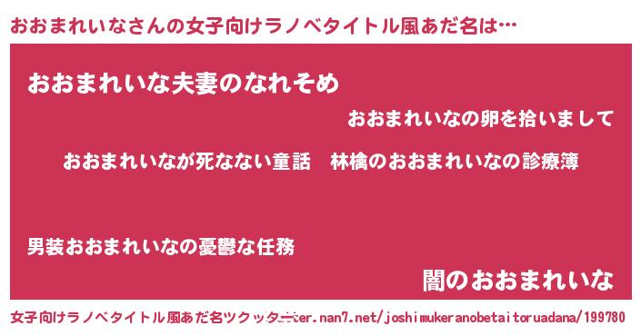 | 意味不明あだ名 | 『住所不定無職おおまれいな(10歳)』 |