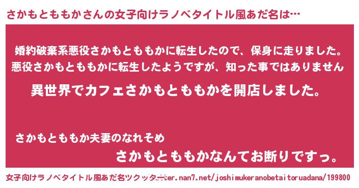 | 胡散臭い通販商品みたいなあだ名 | 『前代未聞の健康食品…その名も「さかもとももか」』 |
