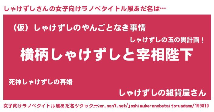 | 男性向けラノベタイトル風あだ名 | 『しゃけずしに滅ぼされるだけの簡単なお仕事です』 |