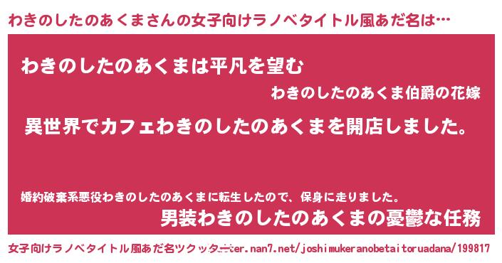 | 意味不明あだ名 | 『永久保存わきのしたのあくま』 |