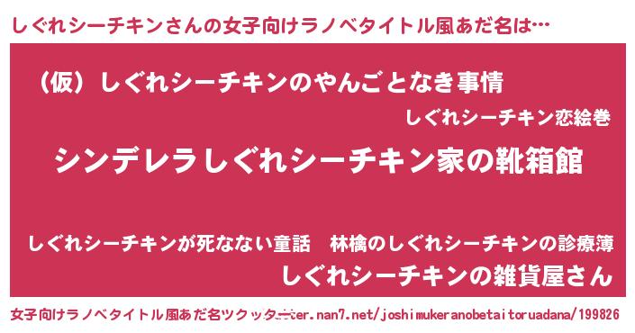 | 胡散臭い通販商品みたいなあだ名 | 『必ず成功する霊験あらたかなお札…その名も「しぐれシーチキン」』 |