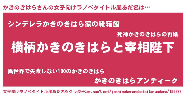 | 男性向けラノベタイトル風あだ名 | 『かきのきはらに滅ぼされるだけの簡単なお仕事です』 |
