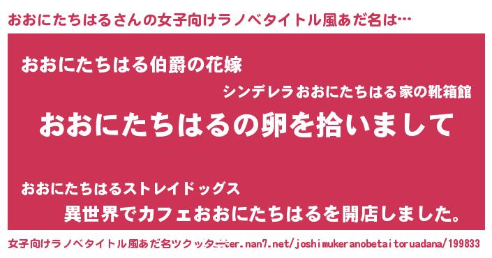 | ヒーロー風カッコイイあだ名 | 『幻影騎士オオ』『ネオオオニタチハル』 |