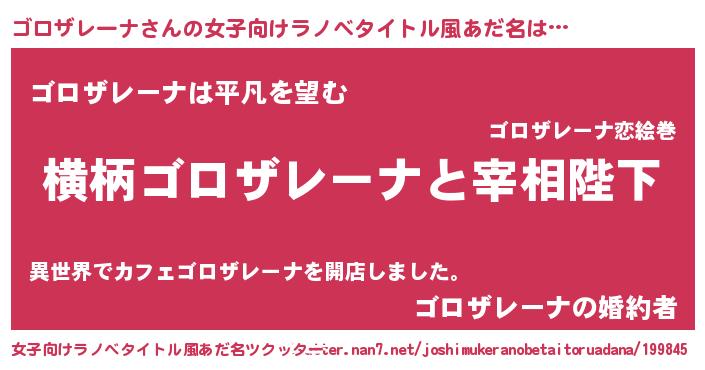 | 意味不明あだ名 | 『とにかく怪しいゴロザレーナ』 |