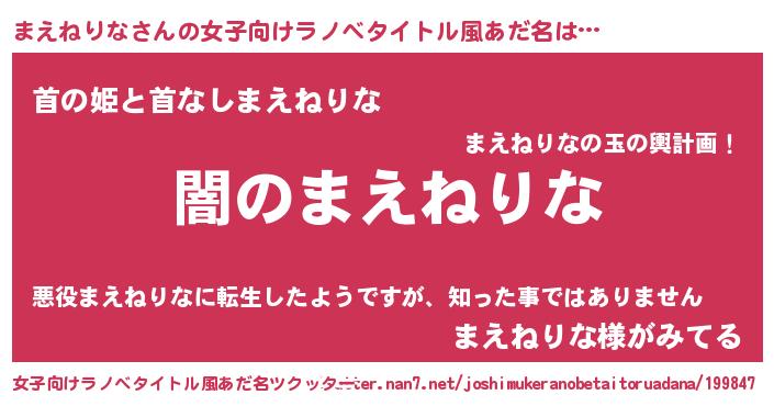 | 男性向けラノベタイトル風あだ名 | 『Re:まえねりなから始める異世界生活』 |