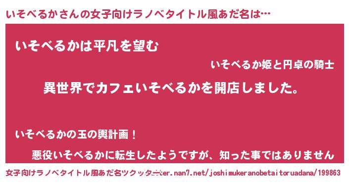 | 男性向けラノベタイトル風あだ名 | 『誰もが恐れるあのいそべるかが、ぼくの専属メイドになるようです。』 |