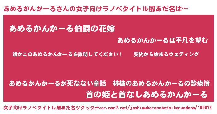 | 男性向けラノベタイトル風あだ名 | 『アメルカンカールアートオンライン』 |
