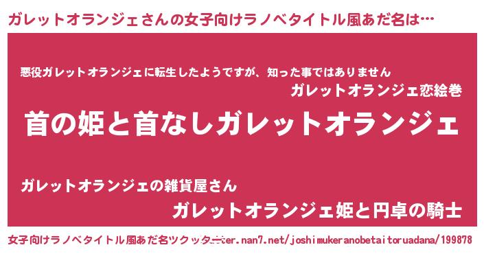 | 男性向けラノベタイトル風あだ名 | 『はたらくガレットオランジェさま!』 |