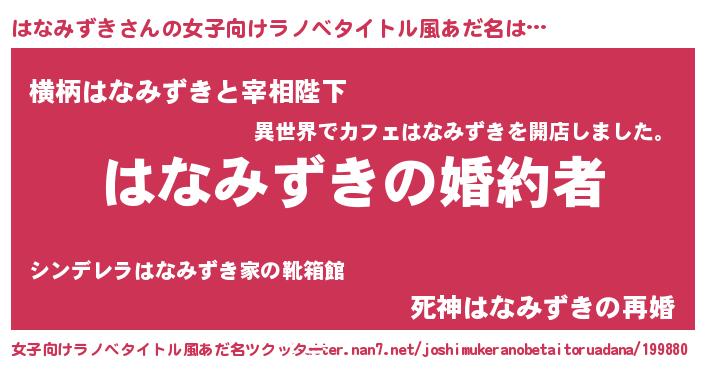 | ファンタジー風あだ名 | 『エターナルハナミズキー』『ゼハナトゥ』 |