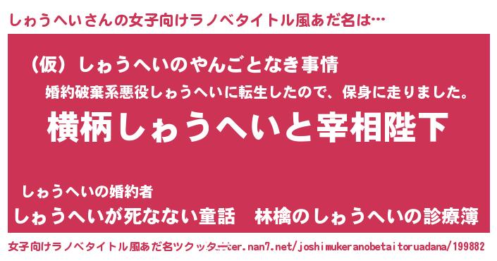 | 胡散臭い通販商品みたいなあだ名 | 『モテモテ間違いなし霊験あらたかなお札…その名も「しゎうへい」』 |