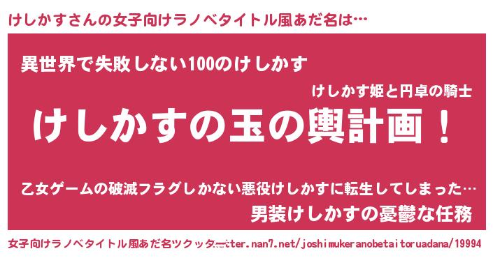 | 胡散臭い通販商品みたいなあだ名 | 『前代未聞の健康食品…その名も「けしかす」』 |
