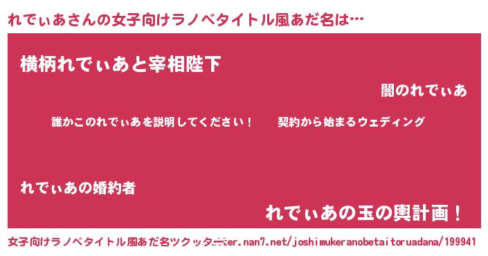 | 男性向けラノベタイトル風あだ名 | 『レディアアートオンライン』 |