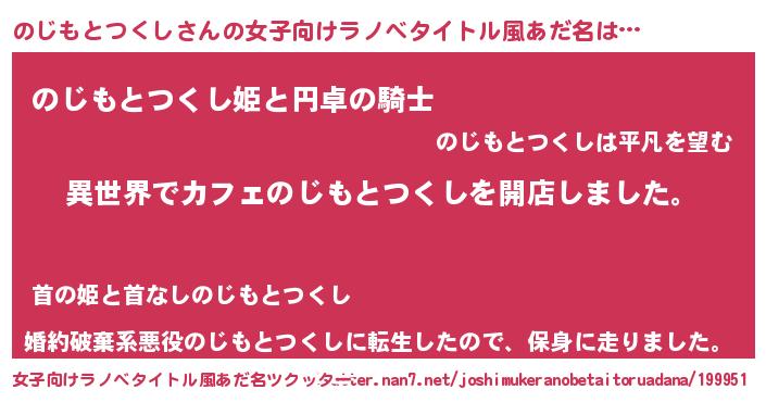 | 男性向けラノベタイトル風あだ名 | 『誰もが恐れるあののじもとつくしが、ぼくの専属メイドになるようです。』 |