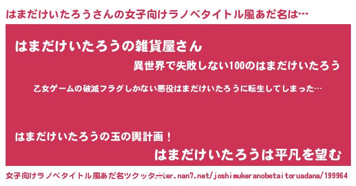 | 意味不明あだ名 | 『住所不定無職はまだけいたろう(10歳)』 |