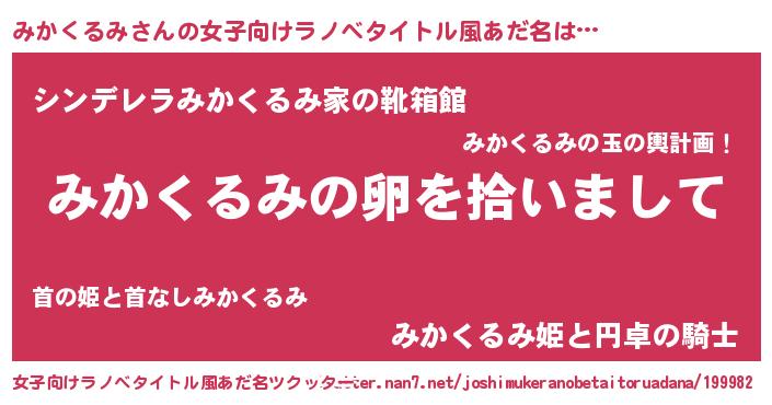 男性向けラノベタイトル風あだ名 | 『ダンジョンにみかくるみを求めるのは間違っているだろうか』 |