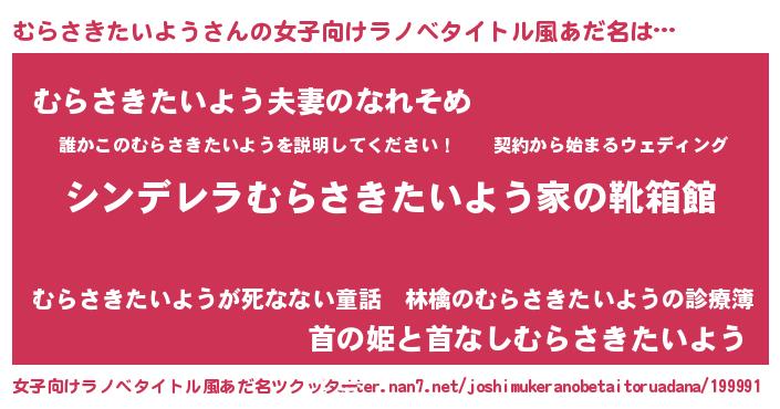 | 男性向けラノベタイトル風あだ名 | 『緋弾のムラサキタイヨウ』 |