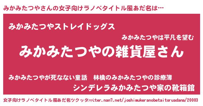| 欧米人風あだ名 | 『みかみたつやクリステル』 |