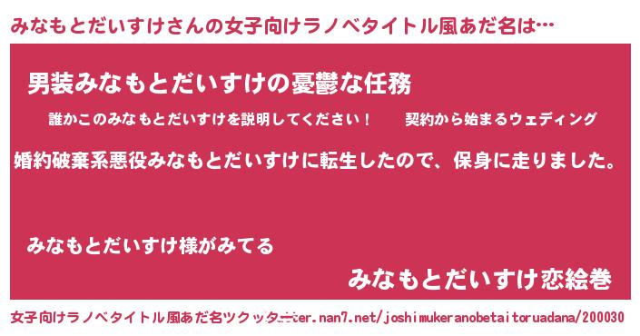 | 胡散臭い通販商品みたいなあだ名 | 『100人中100人が認めたイリジウム磁石…その名も「みなもとだいすけ」』 |