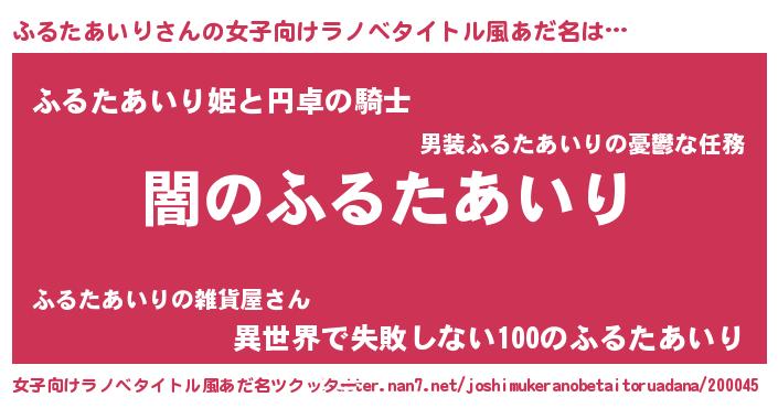 | 男性向けラノベタイトル風あだ名 | 『Re:ふるたあいりから始める異世界生活』 |