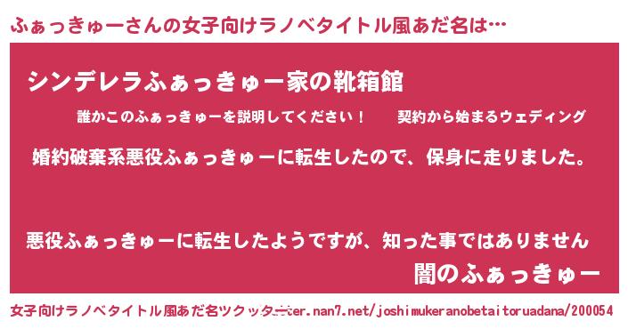 | 男性向けラノベタイトル風あだ名 | 『ファッキュースレイヤー』 |