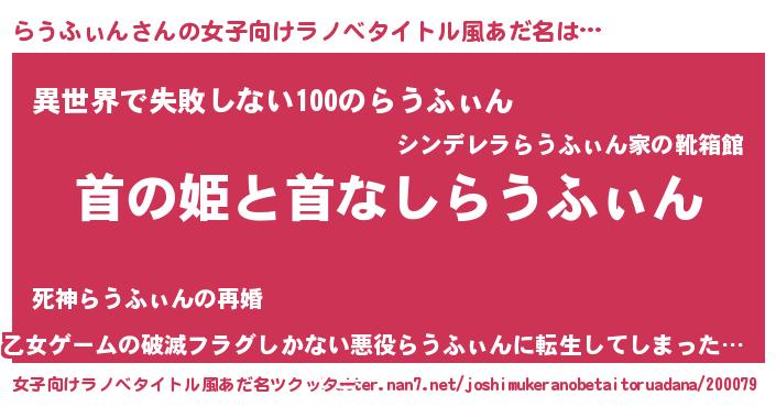 | 意味不明あだ名 | 『永久保存らうふぃん』『自称らうふぃん』 |