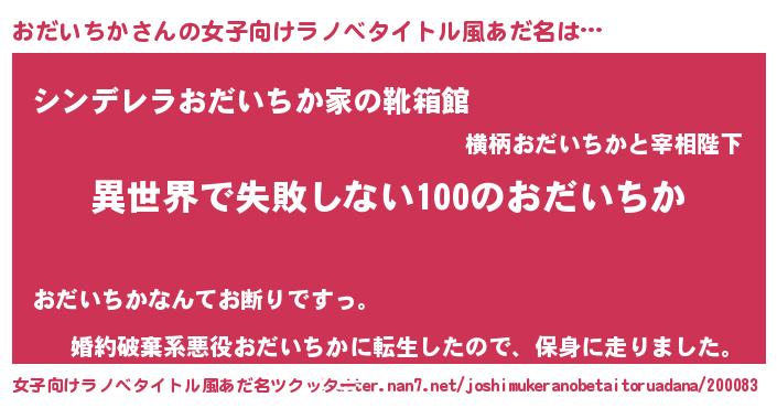 | 男性向けラノベタイトル風あだ名 | 『おだいちかという概念が存在しない退屈な世界 』 |