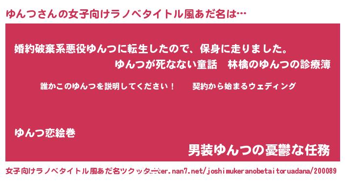 | 男性向けラノベタイトル風あだ名 | 『ユンツアートオンライン』 |